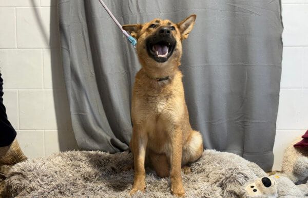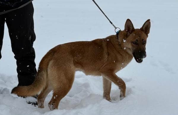 "Flamina kam im November 2025 ins Tierheim. Sie nahm an einem Sozialisationstraining teil, weil sie in unsicheren Situationen laut jaulte und kreischte.