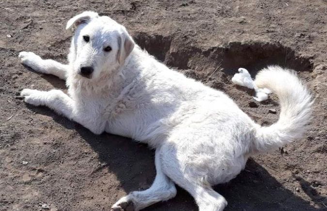 Im Tierheim war schnell klar, dass es sich um einen Wurf Herdenschutzhunde handelt, die entsorgt wurde. Einer der 4 Geschwister, ein schwarzer Rüde, konnte vor Ort vermittelt werden.