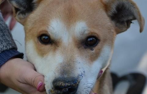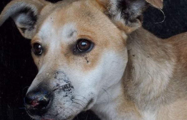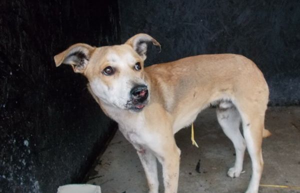 Unser Ian ist ein armer Tropf, er wurde am 4.11.2014 an der Strasse neben dem Baumax gefunden, einsam, verloren und vermutlich im Schock sass er am Strassenrand mit einer grossen, offenen Wunde über Nase, Lippe und Lefze. Wenn man weiss, wie empfindlich die Hundenase ist, kann man sich vorstellen, wie schmerzhaft diese Verletzung für Ian gewesen sein muss. Ian wurde sofort in die Tierklinik gebracht, wo die Wunde mit mehreren Stichen genäht werden musste. Die Fäden konnten mittlerweile gezogen werden und Ian ist auf dem Wege der Besserung. Vielleicht hatte er einen Zusammenstoss mit einem Auto.