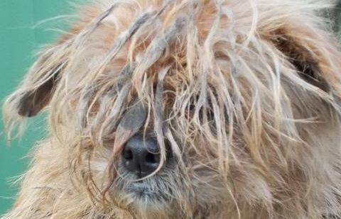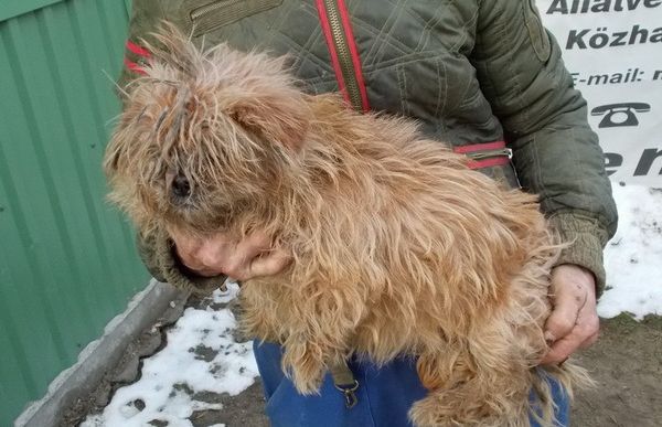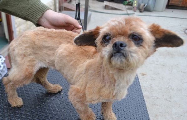 Diese süsse, schon sehr betagte Hundedame wurde am 10.2.2015 in einem Wohnpark gefunden. Sie war sehr verwahrlost und ungepflegt, wie auch den einen Fotos zu sehen ist. Die Vermutung liegt nahe, das man diese Hündin ausgesetzt hat. Der Tierarzt schätzt sie auf 13-15 Jahre.