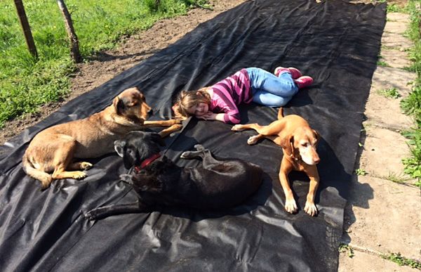 Margo kommt mit anderen Hunden aus, sie teilt sich momentan den Zwinger mit Julcsi.