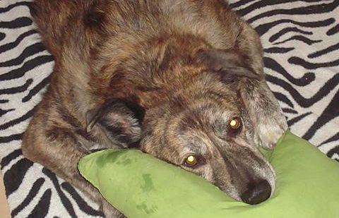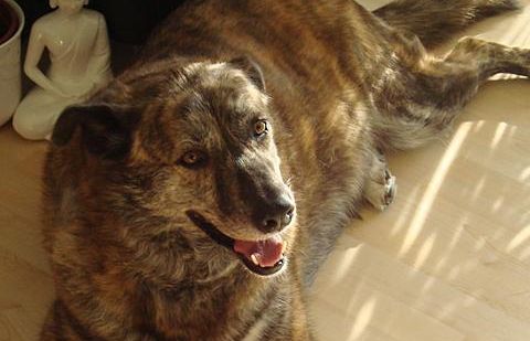 Noodle ist wahrscheinlich ein Herdenschutzhund der Rasse Cao da Serra de Estrella (die kurzhaarige Variante) oder ein Mix davon.