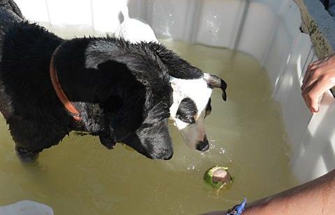 Update 22.6.14: Yala ist sehr aktiv, spielt und badet ununterbrochen und bringt Leben "in die Bude". Sie ist die aktivste Hündin, die wir momentan haben, ist ständig in Bewegung, springt mühelos in und aus dem "Pool", wo sie nach Spielzeug taucht, steht und springt an uns hoch, rennt unermüdlich Bällen nach... kurz, ein Energiebündel par excellence.
