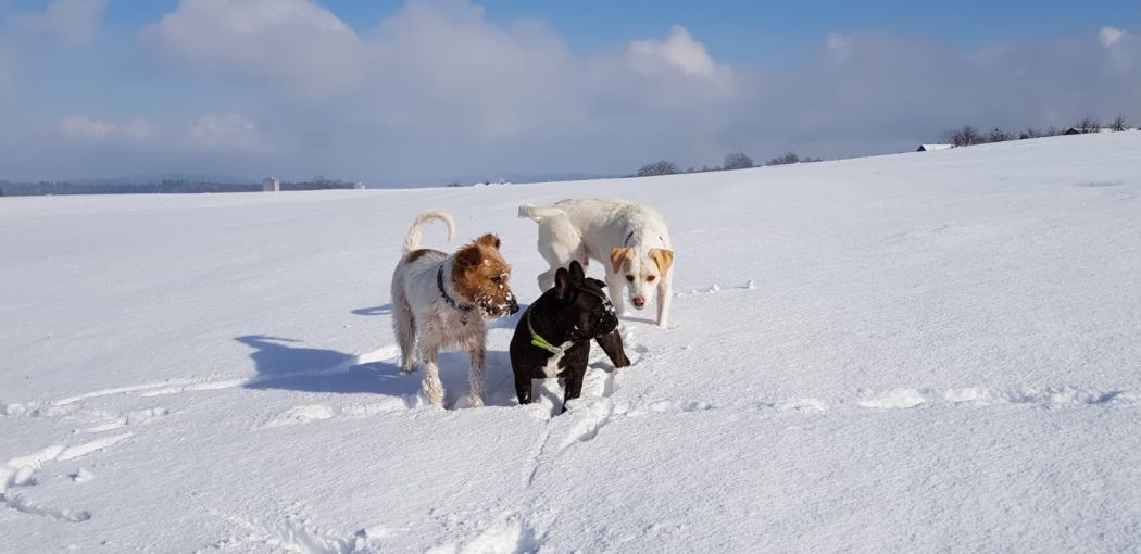 Es gefällt ihm nämlich etwas Neues zu lernen und es wird jede Woche besser, bald probieren wir alleine mit Ihm in der Hundeplausch Gruppe.
