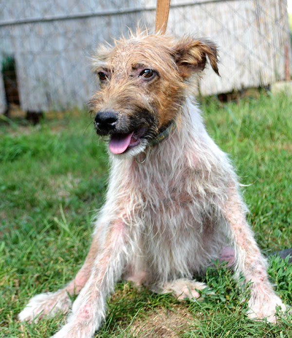 Er war sehr schüchtern am Anfang zu uns, was sich aber schnell legte und er sich wunderbar in den Tagesablauf integrierte. Mit den anderen Hunden verstand er sich auf Anhieb bestens. Seine Haare wuchsen wieder und er nahm kräftig an Gewicht zu und er wurde langsam sehr zutraulich. Tägliche Spaziergänge und Spielereien liebt er und ist unermüdlich im Schuhe kauen. Also jetzt müssen wir alle Schuhe wegräumen.:)