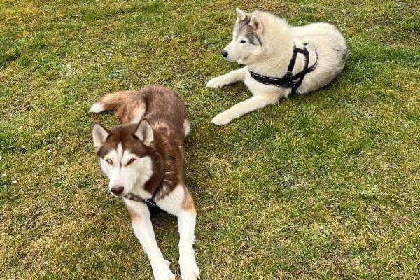 Wir durften Bella, jetzt Nukka (Inuit für ‘kleine Schwester’) am 7.7.22 in Wädenswil in Empfang nehmen. Sie war sehr ängstlich, gehetzt, eine unsichere Huskyhündin und preschte generell, wenn sie nicht weiter wusste, nach vorn.